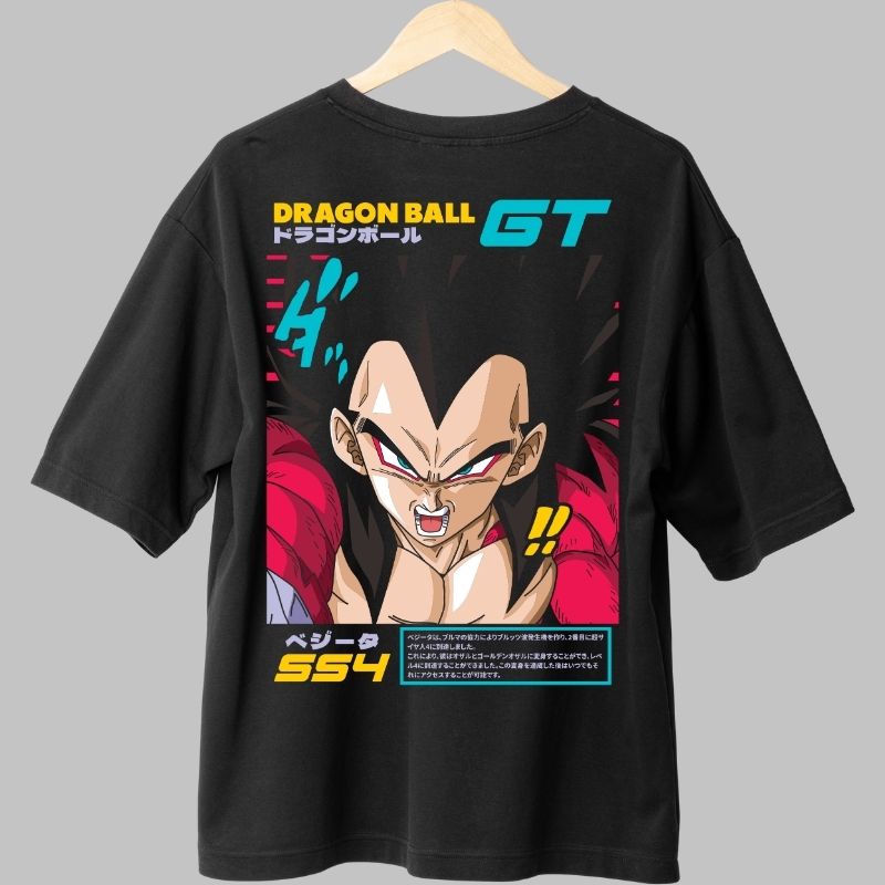 Vegeta in forma SSJ4 aduce un vibe salbatic si puternic, ideal pentru fanii Dragon Ball GT. Designul vibrant si expresia de lupta il transforma intr-un tricou de impact vizual.