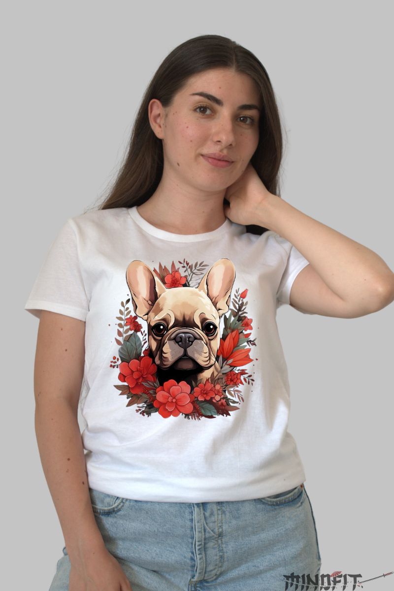 Tricou Dama Personalizat Catel Bulldog si Flori