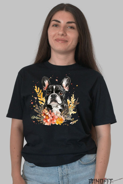 Tricou cu Caine Bulldog Negru | Model Floral