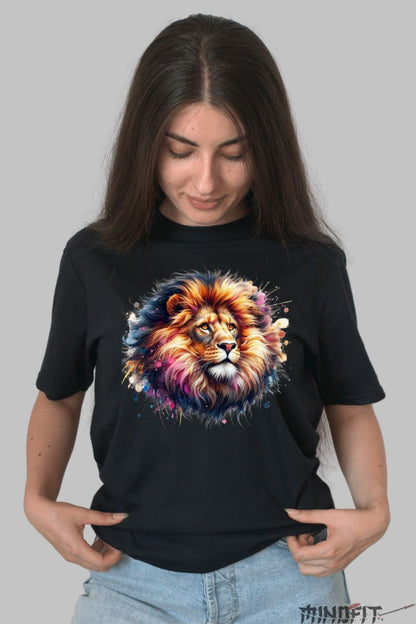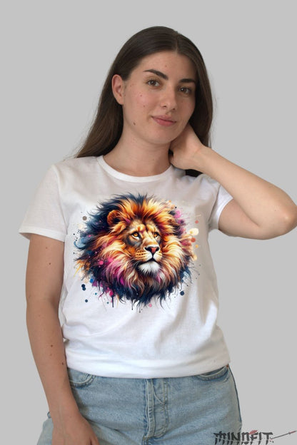 Acest tricou unic combina puterea si eleganta – un cap de leu impunator, inconjurat de fire colorate in coama, ce creeaza un efect feeric si artistic. Este alegerea perfecta pentru femeile care doresc sa-si exprime stilul si personalitatea printr-un design simbolic si expresiv.