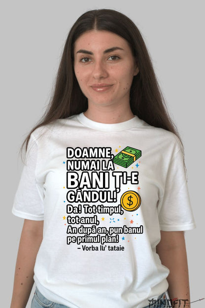 Tricou cu Mesaj Amuzant "Gandul la Bani"
