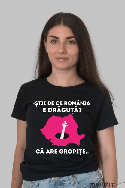 Tricou cu Mesaj Romania cu Gropite - Model funny