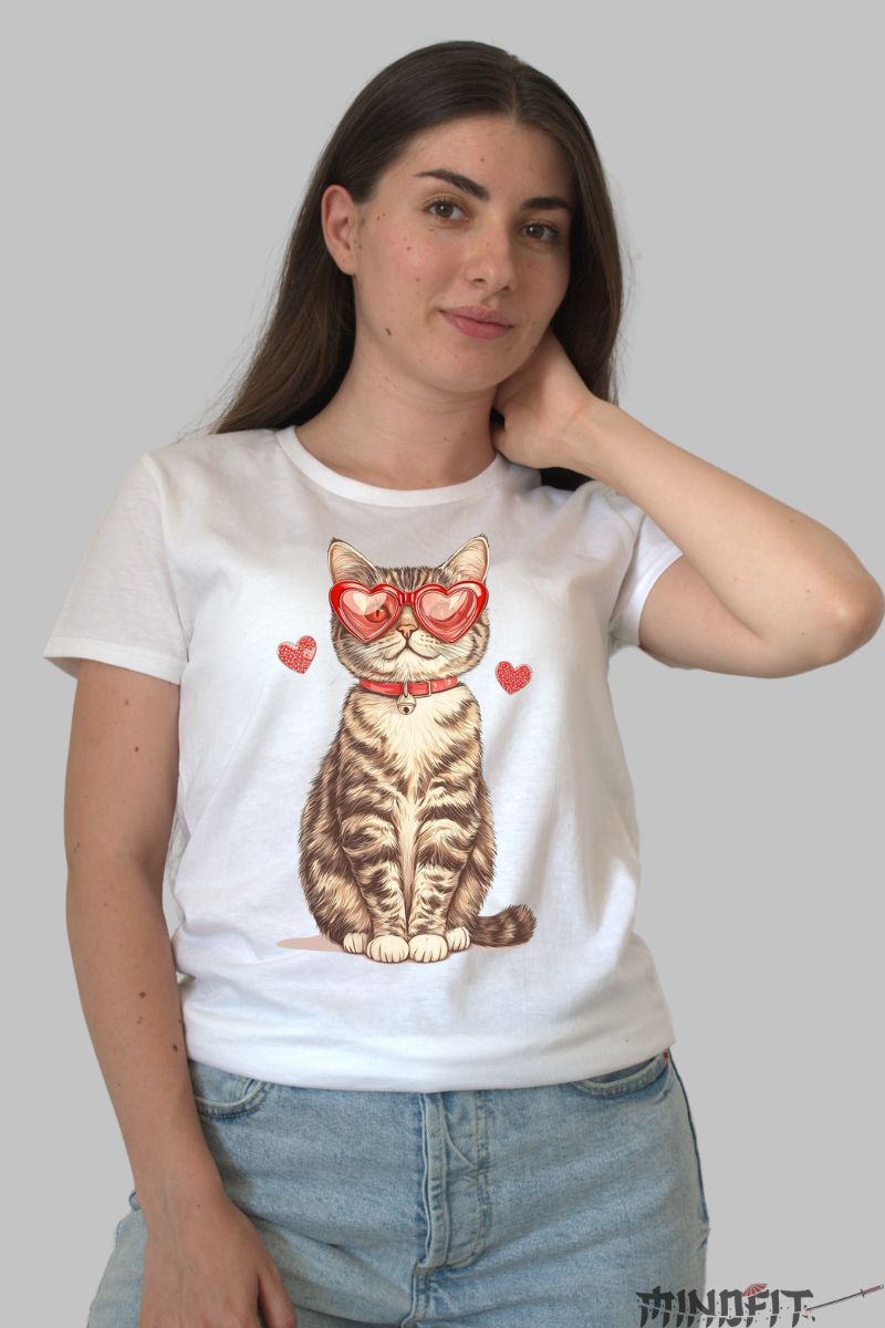 Tricou Dama cu Pisica si Ochelari | Model Retro