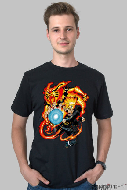 Un model spectaculos pentru iubitorii de Naruto! Acest tricou il infatiseaza pe Naruto Uzumaki in plina actiune, alaturi de o creatura puternica, amandoi cu trasaturi comune – dungile negre pe obraji, simbolul luptei ninja. O reprezentare memorabila a legaturii dintre ninja si fortele lor spirituale, perfect pentru fanii care vor sa poarte o parte din mostenirea acestui univers.