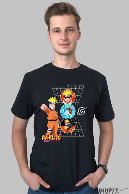 Acest tricou este alegerea perfecta pentru fanii universului Naruto care iubesc estetica retro! Designul combina stilul grafic cu grilaj vintage si cele trei ipostaze emblematice ale lui Naruto Uzumaki, reflectând evolutia si spiritul sau neclintit. Ideal pentru un look original si nostalgic.